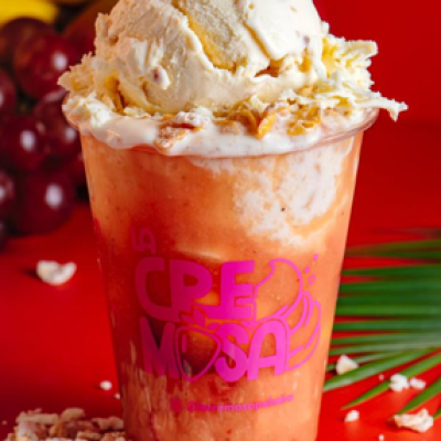 Postre a base de Merengue Crocante (conocido tradicionalmente como suspiro) con Crema La Cremosa, Frutas, y variedad de Toppings de acuerdo al sabor que elijas.